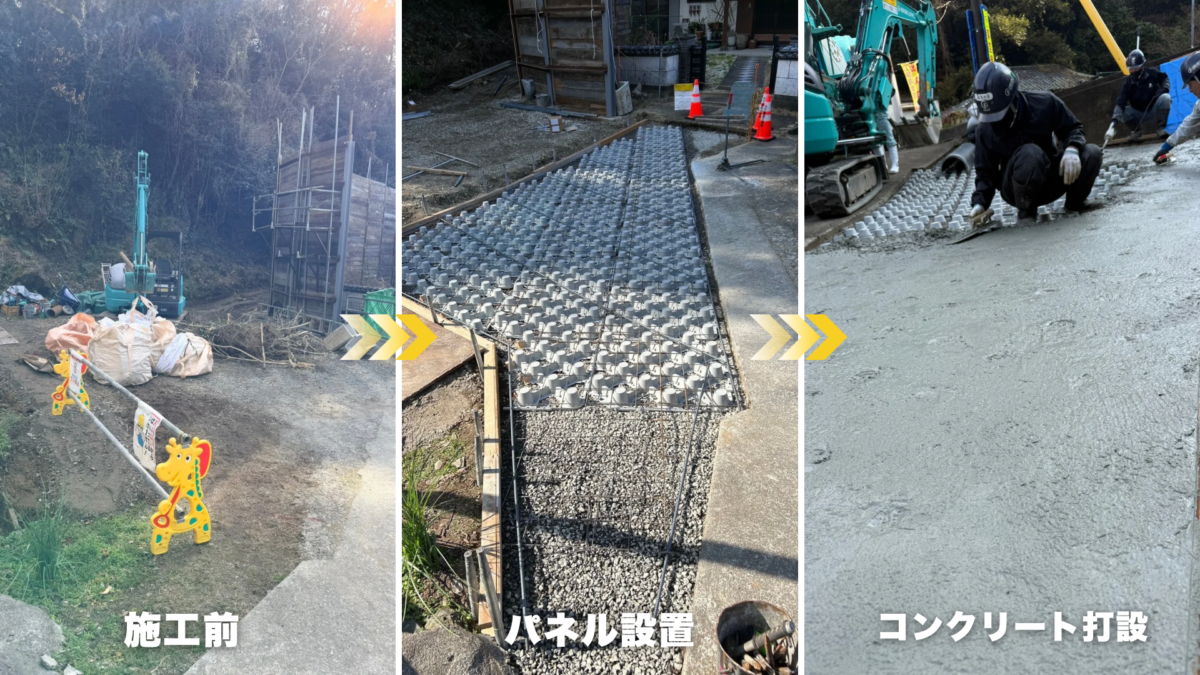 ③コンクリート打設(パネルより5ミリ~1センチ生コンを被せる)