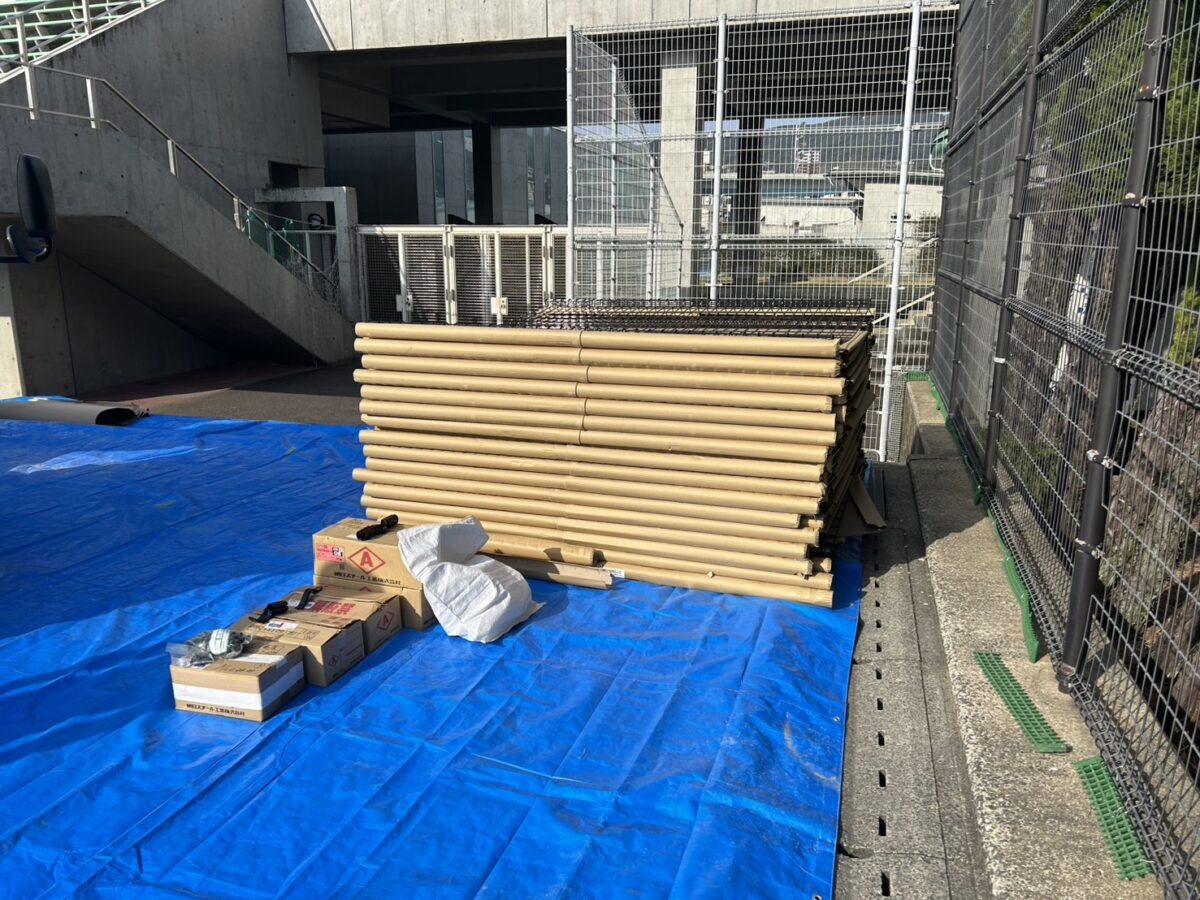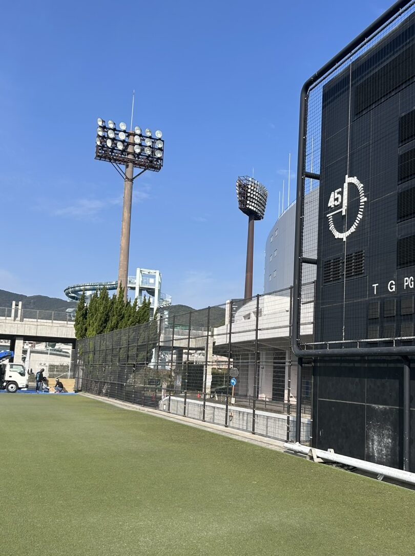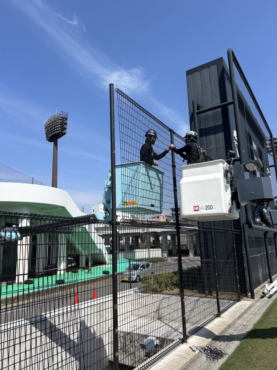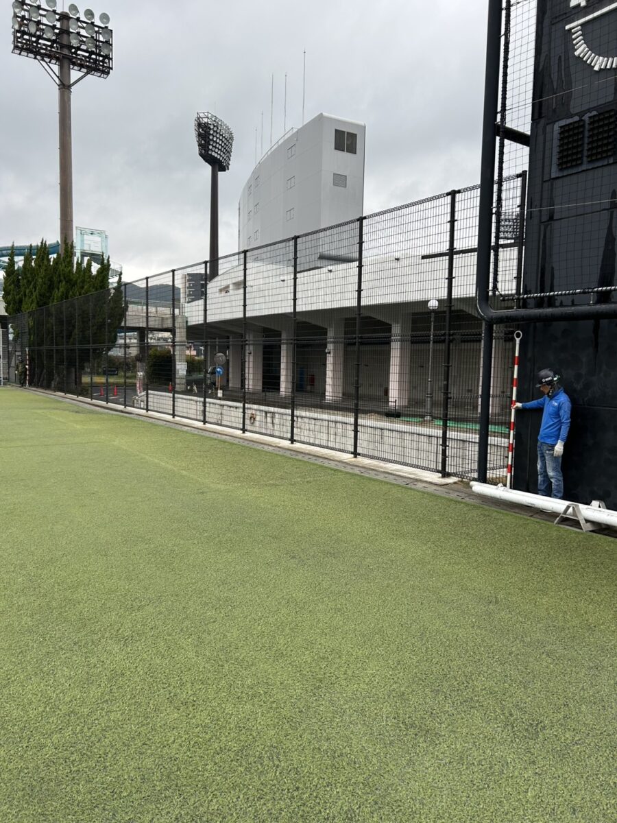老朽化やボールの衝突などにより傷んでいた、得点板横のフェンス(高さ4m・長さ31m)を新しいフェンスに交換。