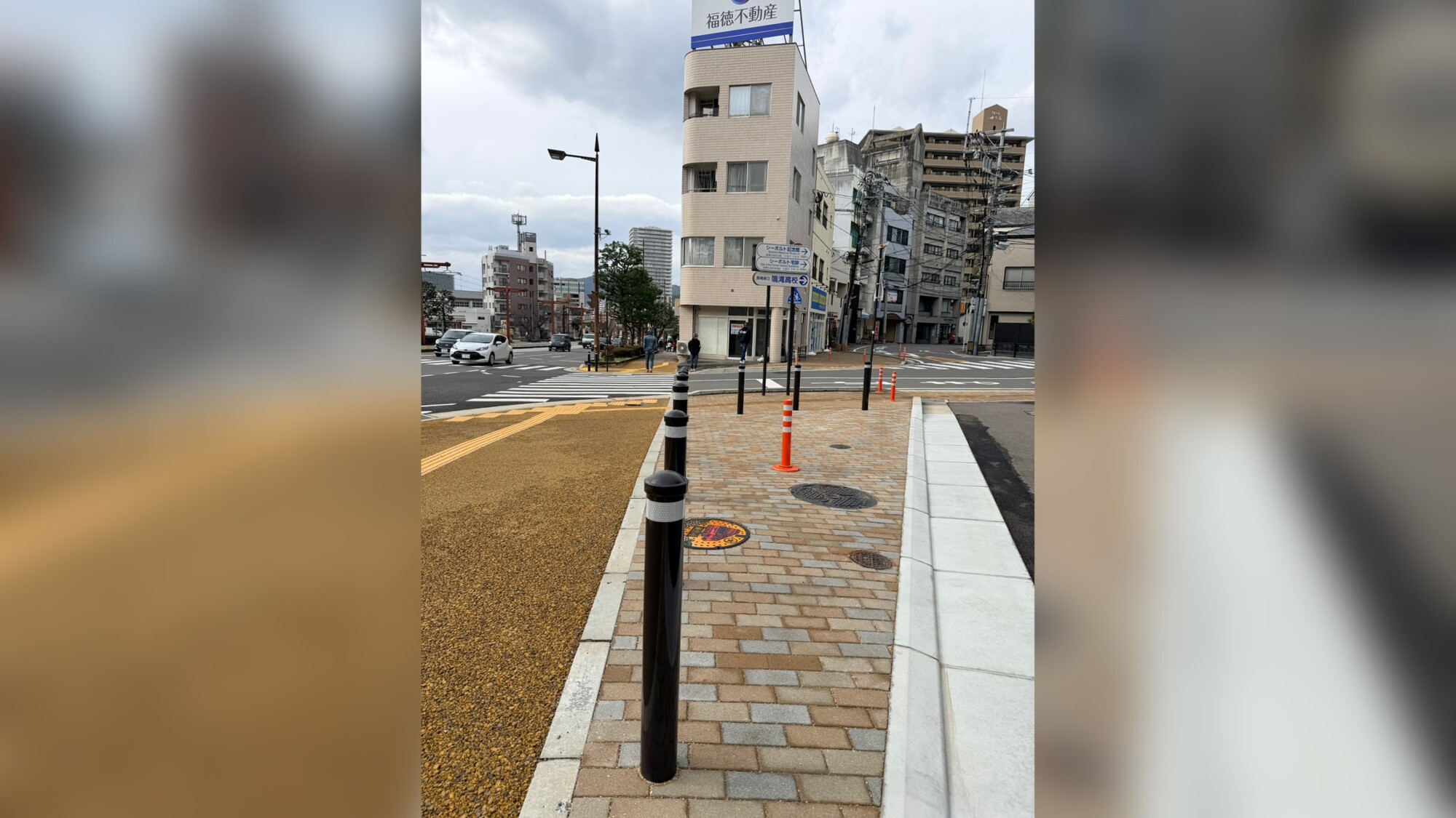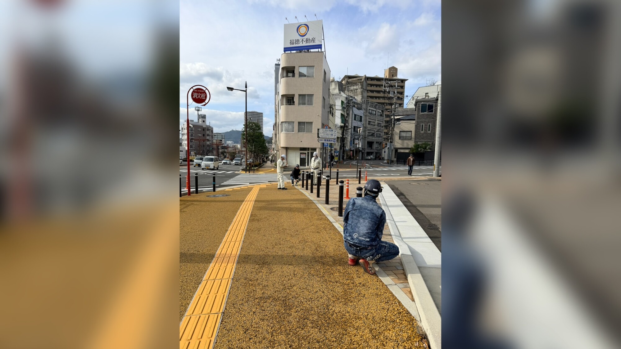 車両の侵入や駐車を防ぐ、ボラードとラバーポールの設置も行いました。